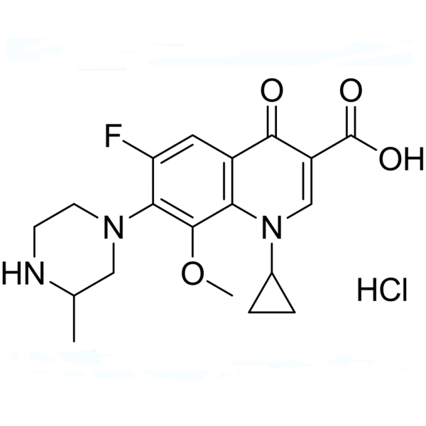 Le chlorhydrate de gatifloxacine (CAS : 160738-57-8) est un nouvel antibiotique fluoroquinolone oral-actif avec un spectre d'activité puissant et large contre les bactéries gram-positives (S.pneumonia, S.aureus) et gram-négatives. Il présente une bonne activité contre les souches résistantes aux agents antituberculeux établis. La gatifloxacine a été commercialisée pour le traitement des infections des voies respiratoires et urinaires, en particulier le traitement de certaines infections communautaires (telles que la bronchite, la pneumonie et les maladies sexuellement transmissibles courantes). Des études comparatives avec la ciprofloxacine, l'ofloxacine et la sparfloxacine contre les organismes résistants aux fluoroquinolones ont indiqué une efficacité meilleure ou équivalente avec moins d'effets indésirables phototoxiques.