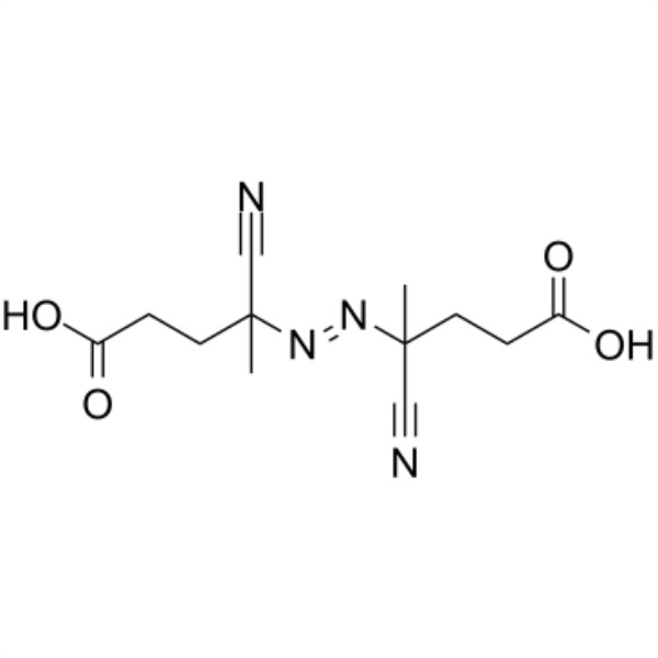 Le 4,4'-Azobis(4-Cyanovaleric Acid) (ABCVA ; ACVA) (CAS : 2638-94-0) est un initiateur azoïque soluble dans l'eau utilisé dans le processus de polymérisation radicale des vinyles, des acylamides, des styrènes ainsi que d'autres polymères.