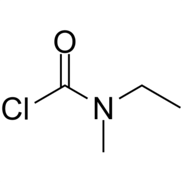 Chlorure de N-Éthyl-N-Méthylcarbamoyle (Chlorure d'éthyl(méthyl)carbamique) (CAS : 42252-34-6), intermédiaire du tartrate de rivastigmine (CAS : 129101-54-8). Le tartrate de rivastigmine est le tartrate de rivastigmine, un médicament destiné au traitement de la maladie d'Alzheimer. La rivastigmine est un dérivé de la physostigmine développé avec succès pour la première fois par Novartis, en Suisse. Le nom commercial est exelon, et la molécule a une structure de carbamate de benzyle, c'est un carbamate cérébral - inhibiteur sélectif de la cholinestérase, qui peut inhiber l'acétylcholinestérase et la butyrylcholinestérase en même temps, et favoriser la conduction nerveuse cholinergique en retardant la dégradation de l'acétylcholine libérée par les neurones cholinergiques. Il peut améliorer le dysfonctionnement cognitif médié par les cholinergiques, améliorant ainsi l'effet cognitif des patients atteints de la maladie d'Alzheimer. La capacité de liaison aux protéines plasmatiques de la rivastigmine est faible, elle traverse facilement la barrière hémato-encéphalique et présente un degré élevé de sélectivité cérébrale. Il peut non seulement agir sélectivement sur les zones les plus vulnérables du cortex cérébral et de l'hippocampe, mais également inhiber préférentiellement les sous-types dominants d'AChE dans le cerveau, ce qui peut réduire les effets secondaires cholinergiques périphériques tout en produisant des effets curatifs. La demi-vie du tartrate de rivastigmine dans l’organisme est courte et le temps d’action est long. Contrairement à la tacrine, ce produit a un effet inhibiteur plus fort sur l'enzyme G1 de l'hippocampe et du cortex. Il est utilisé en clinique pour traiter la démence légère à modérée d'Alzheimer, suspectée de maladie d'Alzheimer ou de maladie d'Alzheimer.