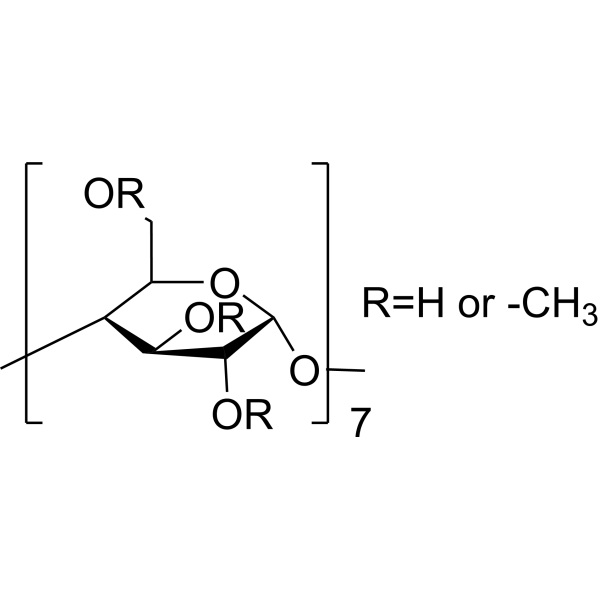 Le méthyl-β-cyclodextrine (Me-β-CD) (CAS : 128446-36-6), est un dissolvant de cholestérol, principalement utilisé pour détruire le radeau lipidique. La méthyl-β-cyclodextrine peut induire une apoptose dépendante de la caspase dans les cellules PEL et inhiber la croissance et l'infection des cellules PEL sans effets indésirables évidents, montrant une activité anti-tumorale potentiellement efficace.