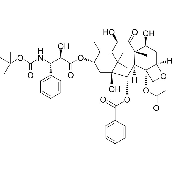 Le docétaxel (Taxotere) (CAS : 114977-28-5), vendu sous le nom de Taxotere ou Docecad, est un médicament de chimiothérapie anti-mitotique bien établi qui agit en interférant avec la division cellulaire. Le docétaxel est approuvé par la FDA pour le traitement du cancer du sein localement avancé ou métastatique, du cancer de la tête et du cou, du cancer gastrique, du cancer de la prostate hormono-réfractaire et du cancer du poumon non à petites cellules. Le docétaxel peut être utilisé seul ou en association avec d'autres médicaments chimiothérapeutiques, comme indiqué, en fonction du type et du stade spécifiques du cancer. Le docétaxel fait partie de la classe des taxanes, qui comprend également le médicament chimiothérapeutique paclitaxel. Bien que le docétaxel reste deux fois plus puissant que le paclitaxel (en raison de l'effet du docétaxel sur le centrosome du fuseau mitotique), les deux taxanes ont une efficacité comparable. Plusieurs articles récents n'ont trouvé « aucune preuve que les régimes contenant du docétaxel produisent de plus grands avantages que ceux comprenant du paclitaxel ». Bien que l’efficacité des deux agents soit équivalente, le paclitaxel peut provoquer moins d’effets secondaires. De plus, il a été noté que le docétaxel est sujet à la résistance cellulaire aux médicaments via divers mécanismes différents.