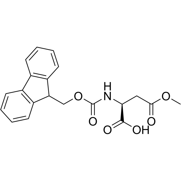 Fmoc-L-Aspartic Acid β-Methyl Ester (Fmoc-Asp(OMe)-OH) (CAS : 145038-53-5) est un dérivé de l'acide aspartique. Fmoc-acides aminés, utilisés dans la synthèse peptidique, utilisés comme intermédiaire de synthèse organique, intermédiaire pharmaceutique, réactif biochimique ou réactif chimique. Fmoc-Asp(OMe)-OH est un intermédiaire de recherche utile utilisé dans la synthèse en phase solide de peptides en tant qu'inhibiteurs sélectifs des peptides de la caspase-3.