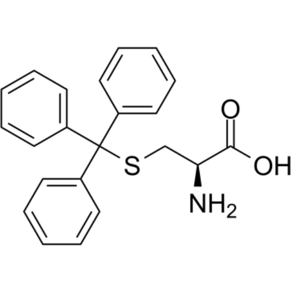 S-Trityl-L-Cystéine (H-Cys(Trt)-OH) (CAS : 2799-07-7) est une cystéine protégée pour la synthèse peptidique. La S-Trityl-L-Cystéine, un acide aminé non-naturel contenant du soufre, est couramment utilisé comme réactif dans la synthèse peptidique en phase solution (SPPS). Il est également utilisé comme liant métallique pour synthétiser des conjugués ferrocénoyl-peptides substitués à l'aide du réactif de couplage peptidique HBTU pour la solution d'applications de détection de cations via des interactions peptide/métal.