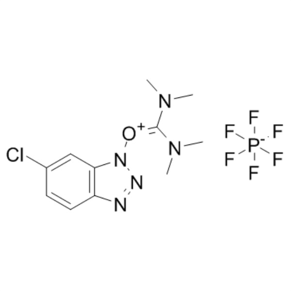 HCTU est un réactif de couplage utilisé pour la formation d'amides et d'esters et couramment utilisé dans la synthèse peptidique. HCTU est analogue à HBTU et possède un substituant Cl sur le cycle phényle en position 6. HCTU est non toxique, stable dans le DMF, adapté à la synthèse en phase solide et en solution. Des puretés élevées, des temps de réaction courts et une efficacité de couplage élevée peuvent être obtenus lorsque le HCTU est utilisé, avec des performances comparables à celles du HATU mais à un prix plus abordable.