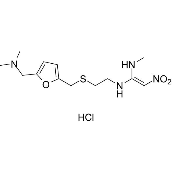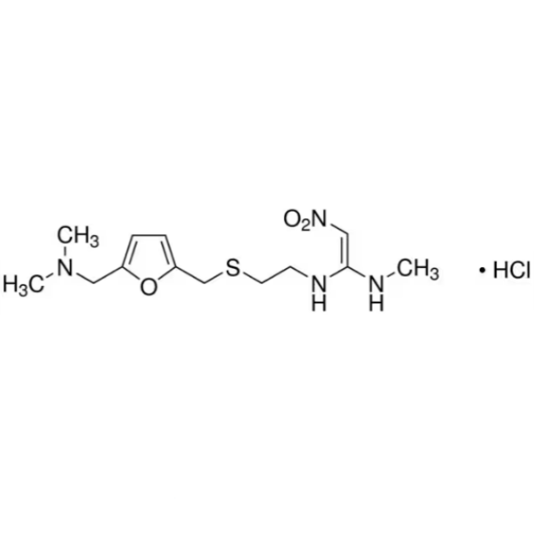 N-[2-[[[5-[(Diméthylamino)méthyl]-2-furanyl]méthyl]thio]éthyl]-N¢-méthyl-2-nitro-1,1-éthènediamine, chlorhydrate [66357-59-3].