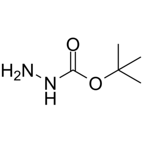 tert-Carbazate de butyle (Boc-Hydrazine) (CAS : 870-46-2), acides aminés et réactifs de synthèse peptidique. Le tert-butyl carbazate est utilisé dans un couplage croisé catalysé au palladium avec des halogénures de vinyle pour préparer des N-Boc-N-alcénylhydrazines. Il est utilisé dans la synthèse peptidique en phase solide et dans la détermination de la pureté optique de l'alfa-amino aldéhyde. Il réagit avec les aldéhydes pour obtenir des hydrazones, qui trouvent une application comme intermédiaire dans la synthèse des inhibiteurs de la protéase du VIH-1. En plus de cela, il est utilisé comme matière première pour la préparation du Boc-azide, un réactif pour introduire la protection aminé Boc. Réactif pour la synthèse des hydrazides sulfoniques et carboxyliques. Carbazate de tert-butyle avec matière première pour la préparation de l'agent protecteur Boc-Azide.